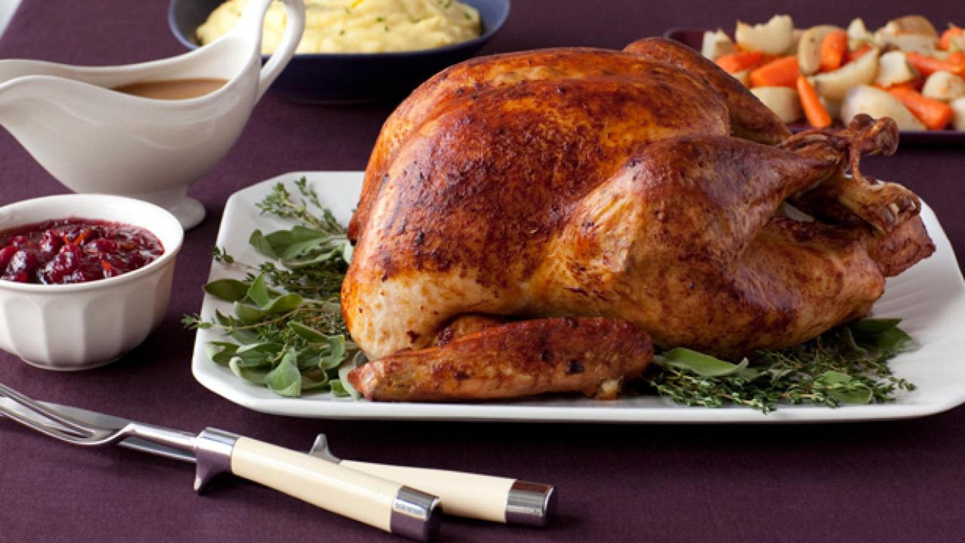 - A whole 12-pound Herb Roasted Turkey with Gravy